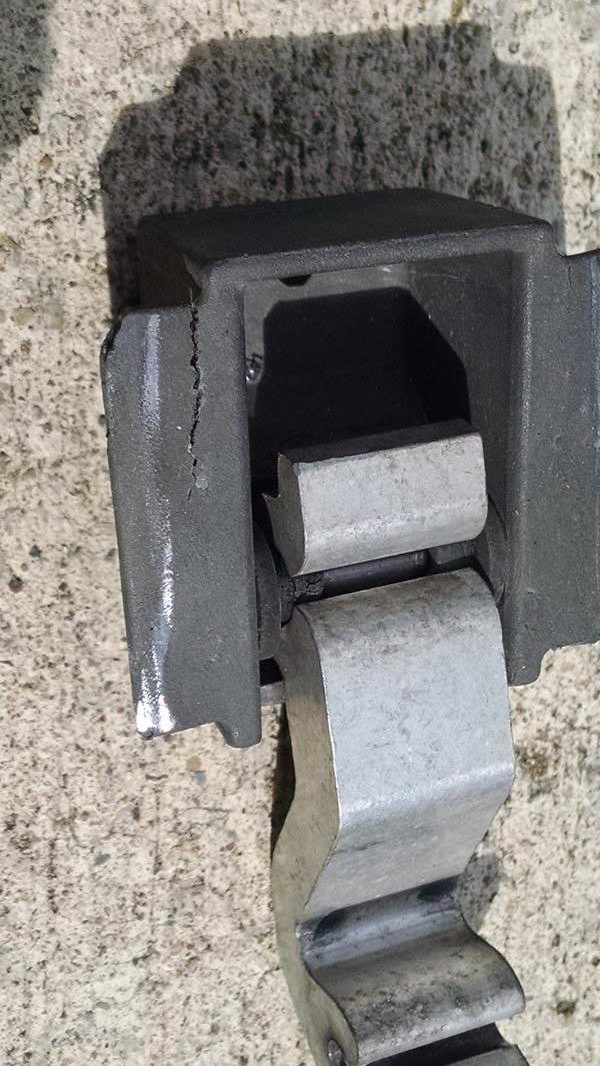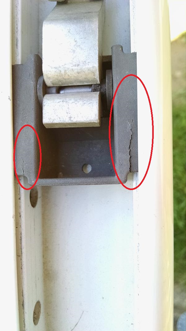 Last month while doing some work on the Mirada, I unrolled the awning and noticed something unusual. The small brackets that slide inside the main support arms had cracks. The sliding bracket on the front arm was cracked almost all the way through. The rear sliding bracket was cracked about 1/4 way through.