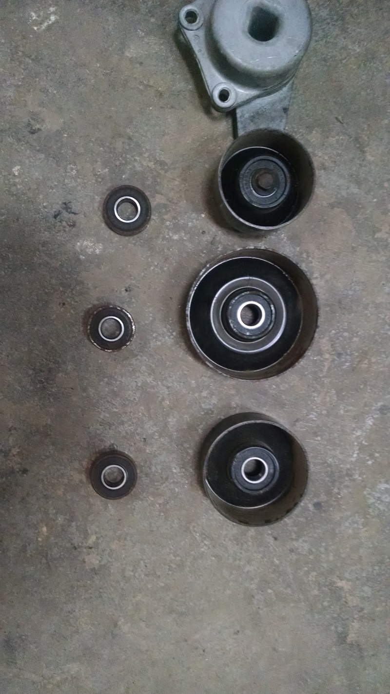 The idler and tensioner bearings also start making noises, so while I had everything apart, may as well replace the idlers bearings.