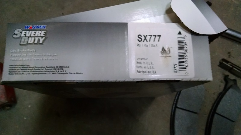 Unlike a car, the rear pads wear a little bit faster than the front pads. So plan on doing both axles. The front and rear pads are identical, so you’ll need two complete sets. I opted for the severe duty Wagner SX777 pads, I think they were about $35 a set
