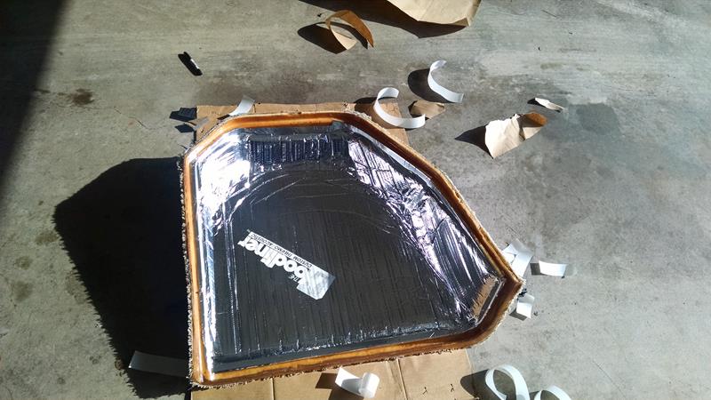 DARN GOOD ADHESIVE – DO NOT remove all the backing then attempt to lay the mat. Once the adhesive touches something, that’s it, it isn’t coming off. If you make a mistake, just cut out the bad section, cut a new piece and stick it on. Use the aluminized tape to cover seams.