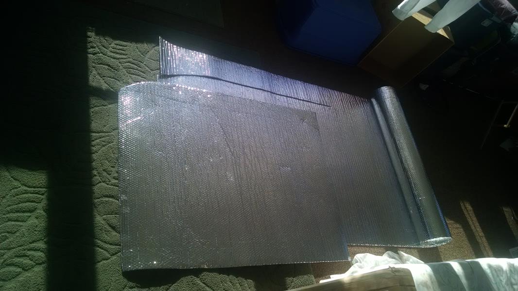 I bought a 48 inch wide roll of the Aluminum bubble-wrap insulating material. This is tall enough to do the two windshield halves.