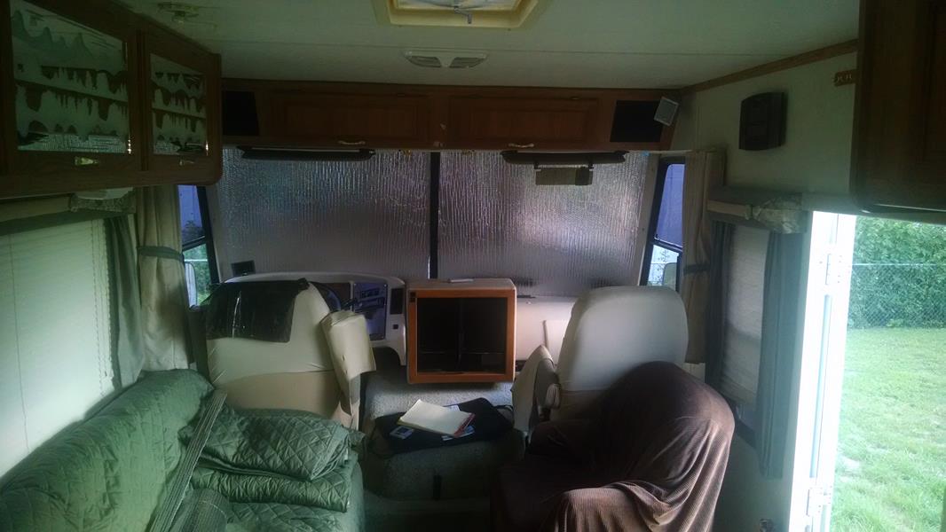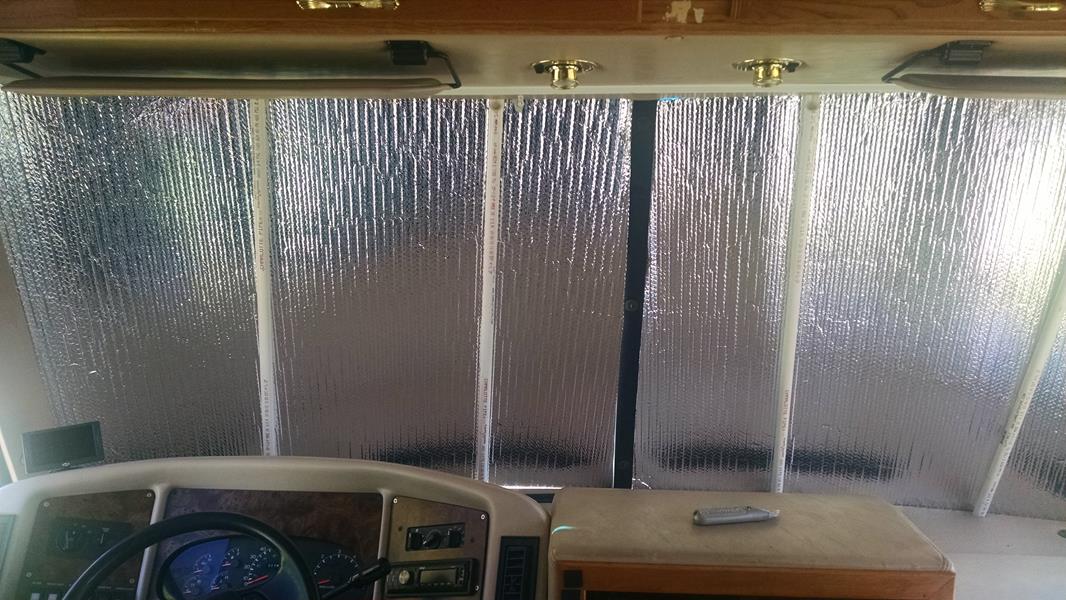 A huge source of sunlight and heat are the large windshields. These are great if your building a greenhouse, but really hurt us when we have the air conditioning running. I looked at several low level tints that don’t block a lot of light, but block most infrared. These were very expensive tints, so I decided to not tint the windshields, but instead would make insulated covers to use when we were parked. More on these later.