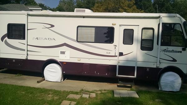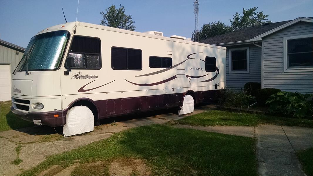 I cut two covers so they would fit up against the inside of the windshield. On my Mirada, there is a 1 inch recess at the top of the windshields where the cabinets butt up against the windshield. I cut the covers so they would fit up into the recesses.